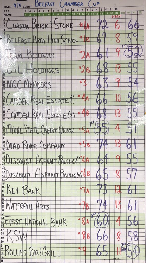 The 12th Annual Chamber Cup Golf Tournament was held on Friday, Sept. 5, 2025, at the Northport Golf Club in Northport, ME. Results are as follows: